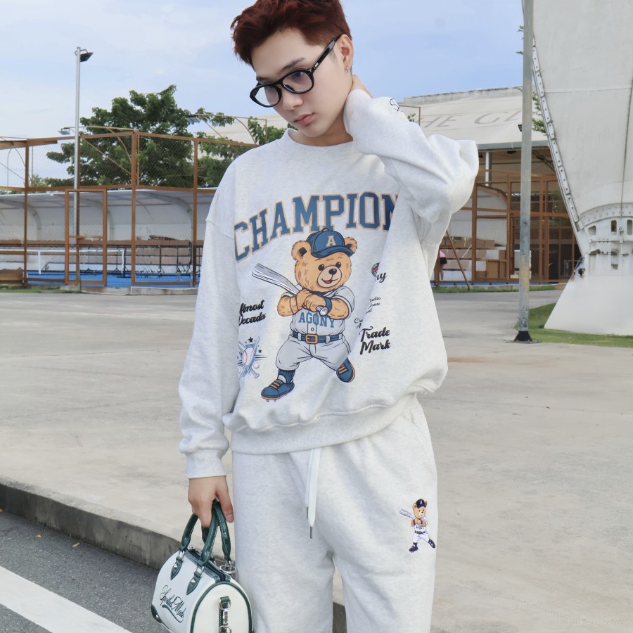 Áo Sweater Nỉ Dài Tay Gấu Bóng Chày Champions Baseball Bear – AGØNY STORY® Unisex Màu Xám