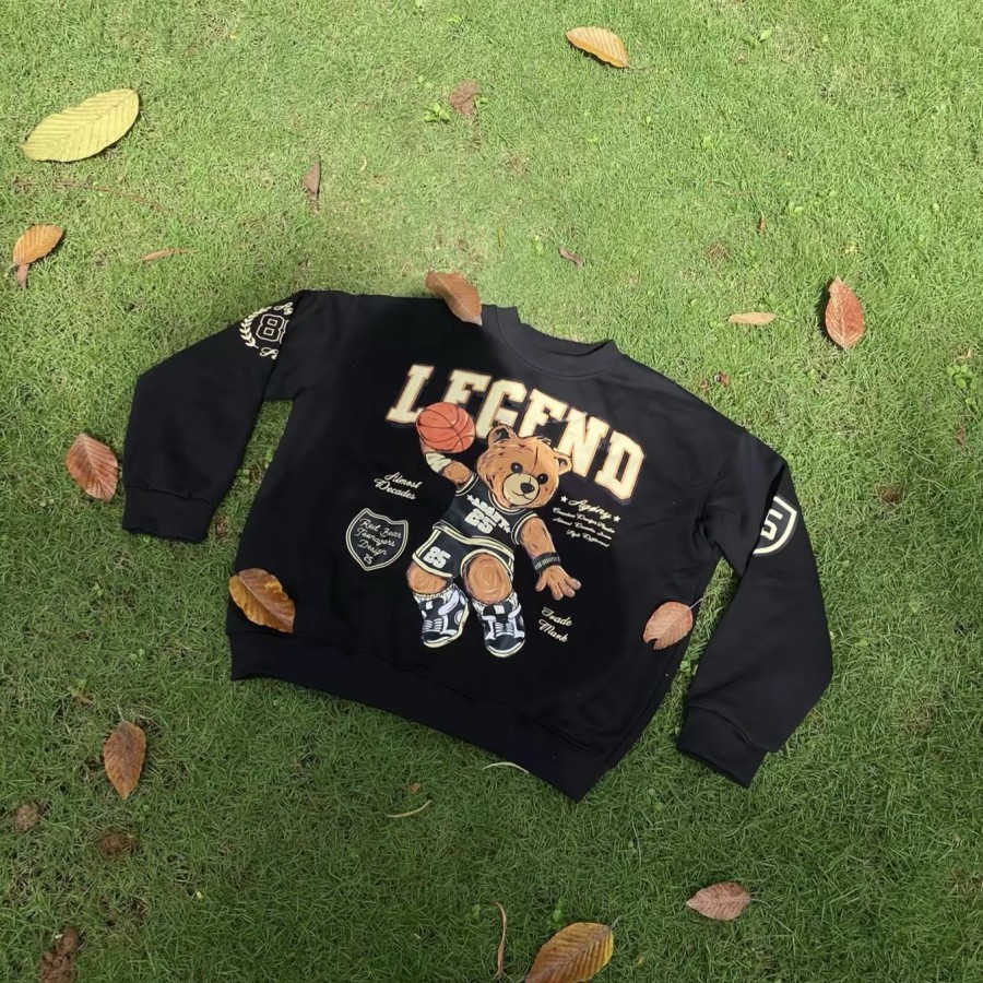 Áo Sweater Nỉ Dài Tay Gấu Bóng Rổ Basketball Bear – AGØNY STORY® Unisex Cotton 100% Màu Đen